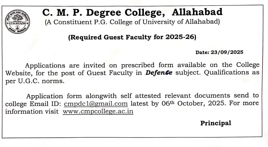 Application form along with self-attested relevant documents sent to college email id: cmpdc1@gmail.com latest by 06 October, 2025.